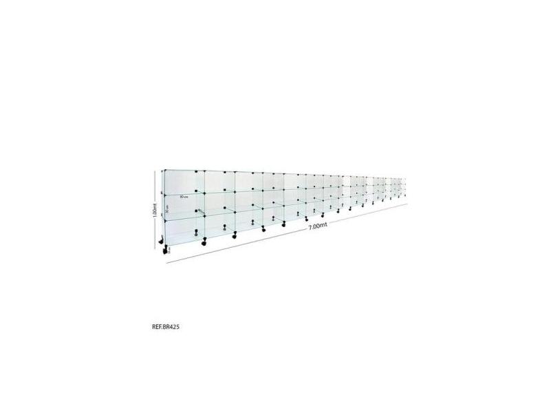 Balcão de Atendimento Modulado em Vidro com Rodízios - 7,00 x 1,00 x 0