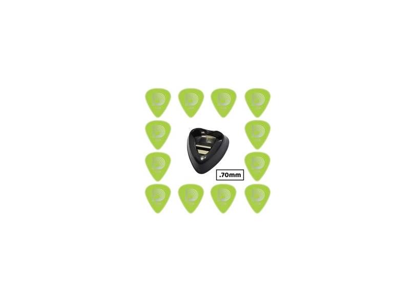Kit 12 Palhetas Daddario Celluglow 0.70mm Medium Guitarra + Porta Palhetas Dunlop Ergo