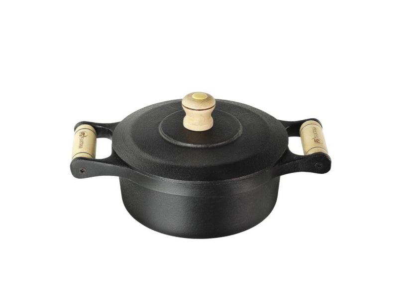 Caçarola Ferro Fundido 2 Alças Madeira Tampa Ferro 1,6 L