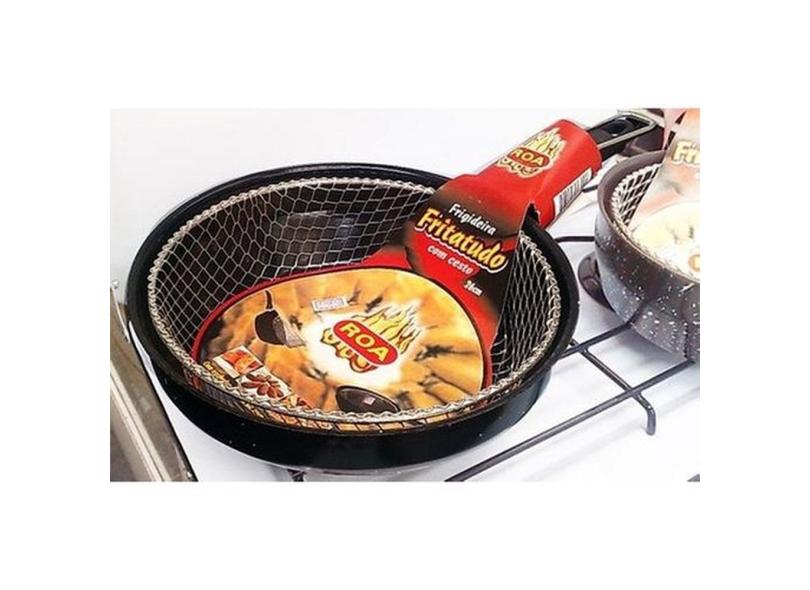 Frigideira De Ferro Esmaltado Com Cesto Fritatudo 20cm