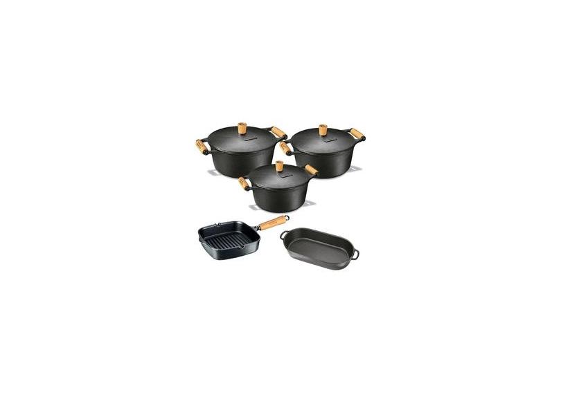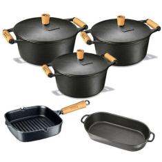 Jogo 3 Caçarola + Frigideira E Assadeira Ferro Panela Mineira