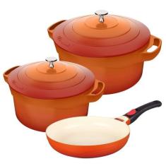 O menor preço encontrado no Brasil para Jogo de Panelas Antiaderente Cerâmico 3 Peças Le Cook Laranja atualmente é R$ 1.507,22.
