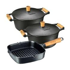 Jogo Panela Ferro 4,0 E 6 Litros + Cook Gril Panela Mineira