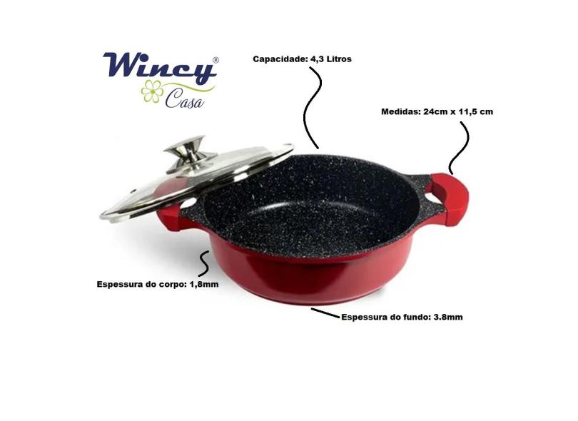 Panela Caçarola 24cm Marble Tampa Vidro 4,3L Wincy