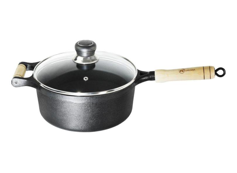 Panela Ferro Fundido Tampa Vidro Cabo Madeira Santana 2,8 Lt
