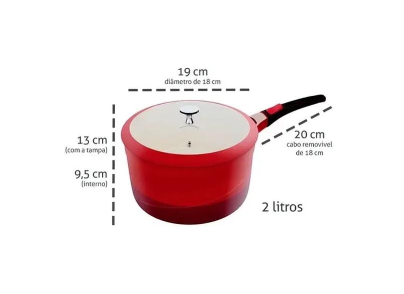 Panela Premier Red 18cm 2 Litros em Alumínio com Revestimento Cerâmico e Cabo Destacavel - Le Cook