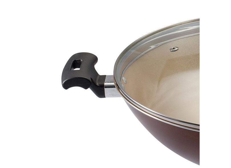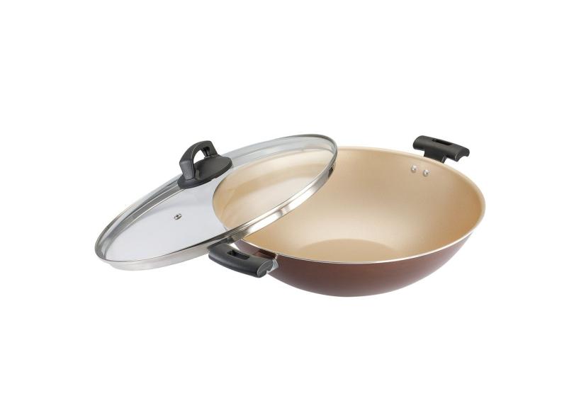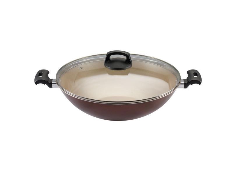 Panela Wok 32 Antiaderente Marrom Com Tampa Premium Panelux