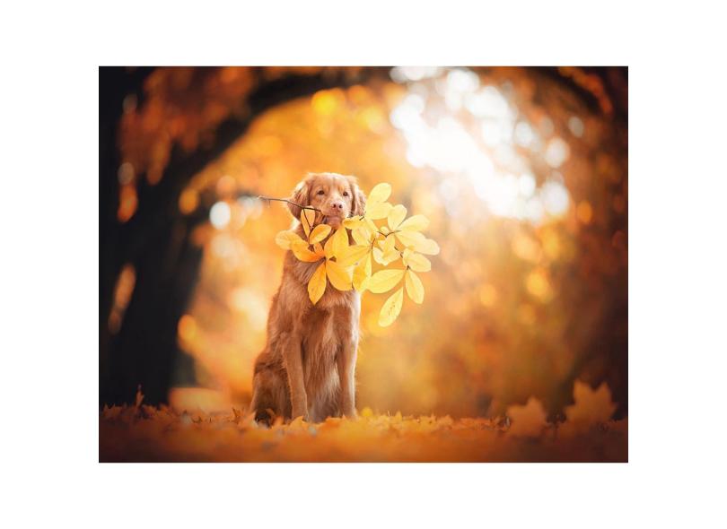 Papel De Parede Animais Cão Folha Outono 3D Anm118