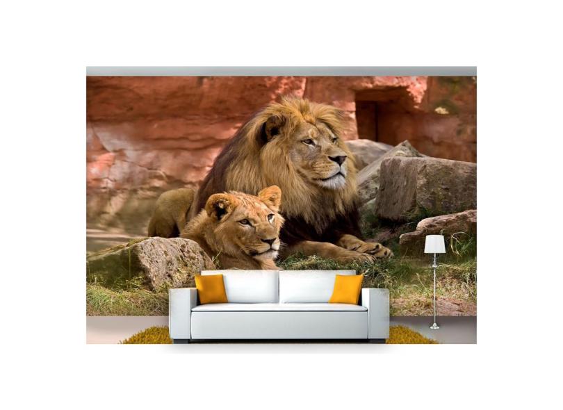 Papel De Parede Animais Leão E Leoa 3D Anm194