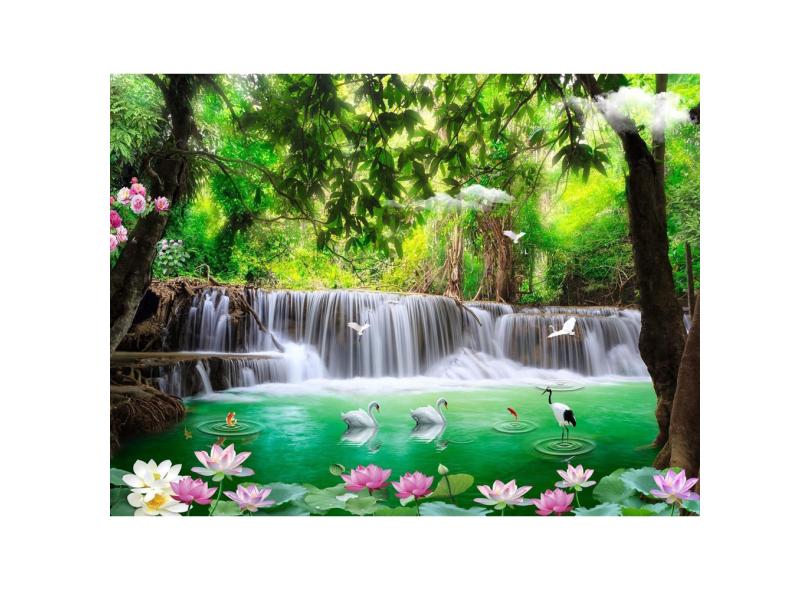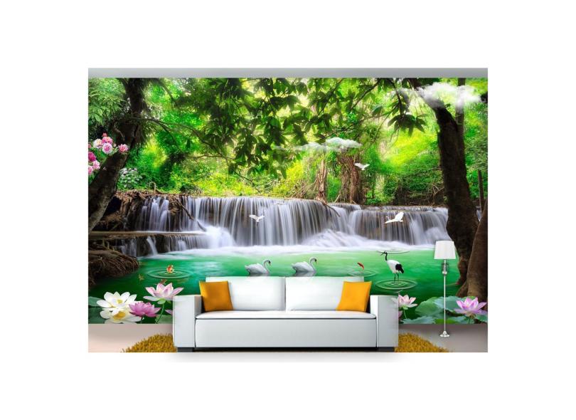 Papel De Parede Cachoeiras Animais Pássaros 3D Xch02 3M²
