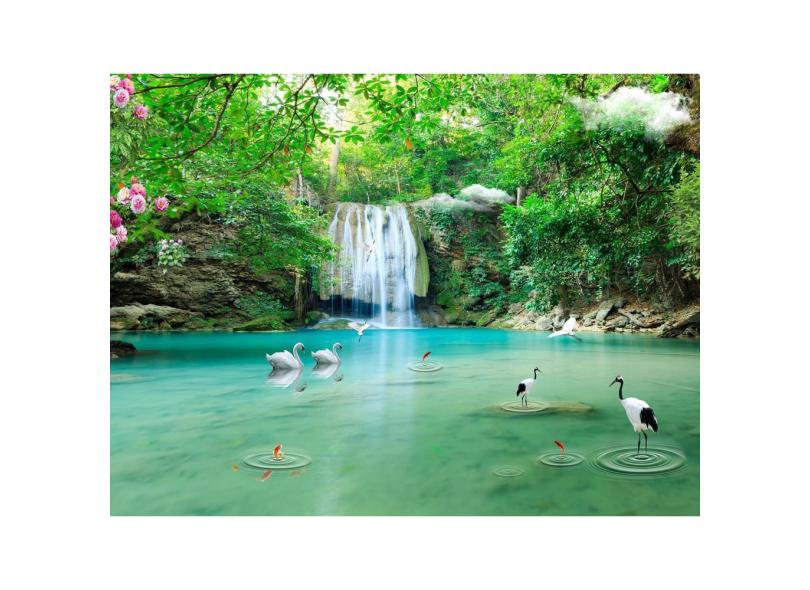 Papel De Parede Cachoeiras Animais Pássaros 3D Xch05 3M²