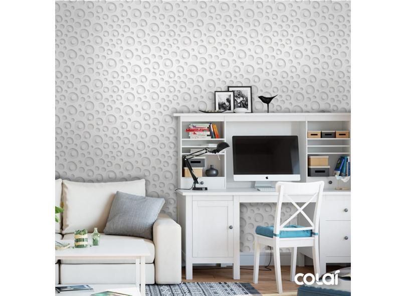 Papel De Parede Efeito Gesso 3D Geométrico Círculo 1 18M