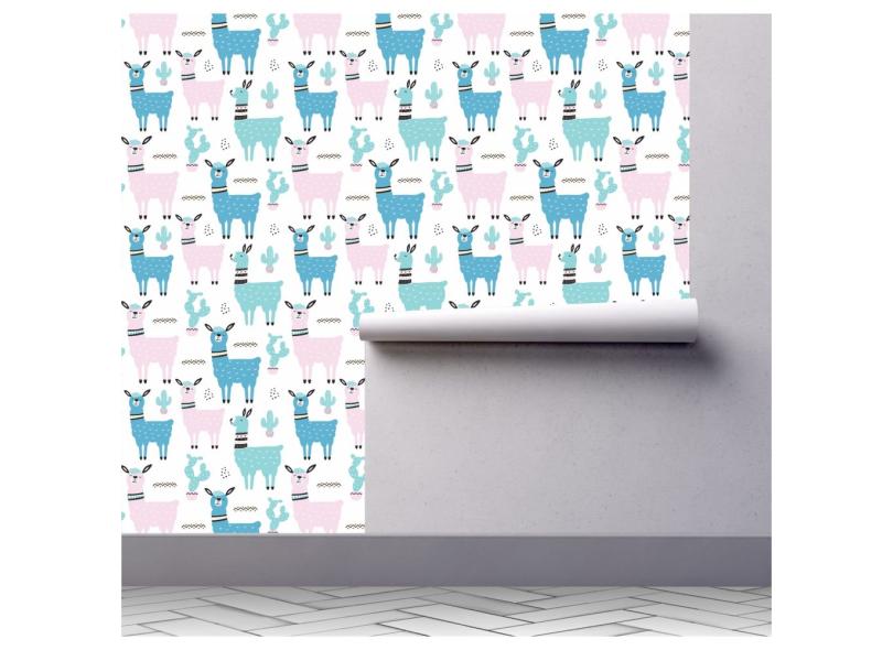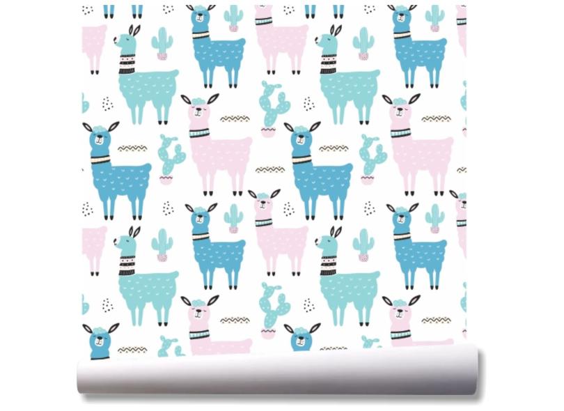Papel de parede infantil lhama animais zoo colorido A230