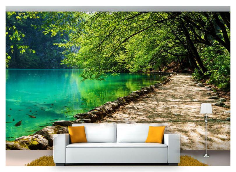 Papel De Parede Lago Peixes Caminho Carpas 3D Nlk139