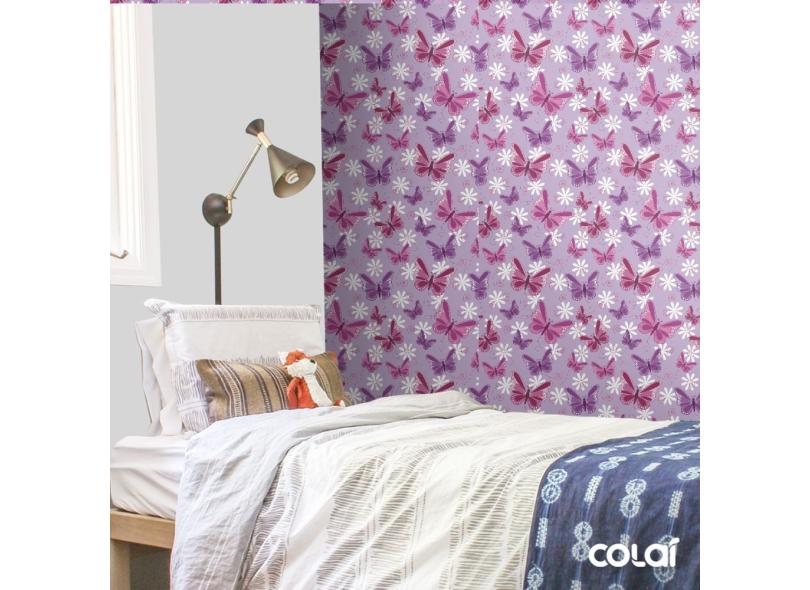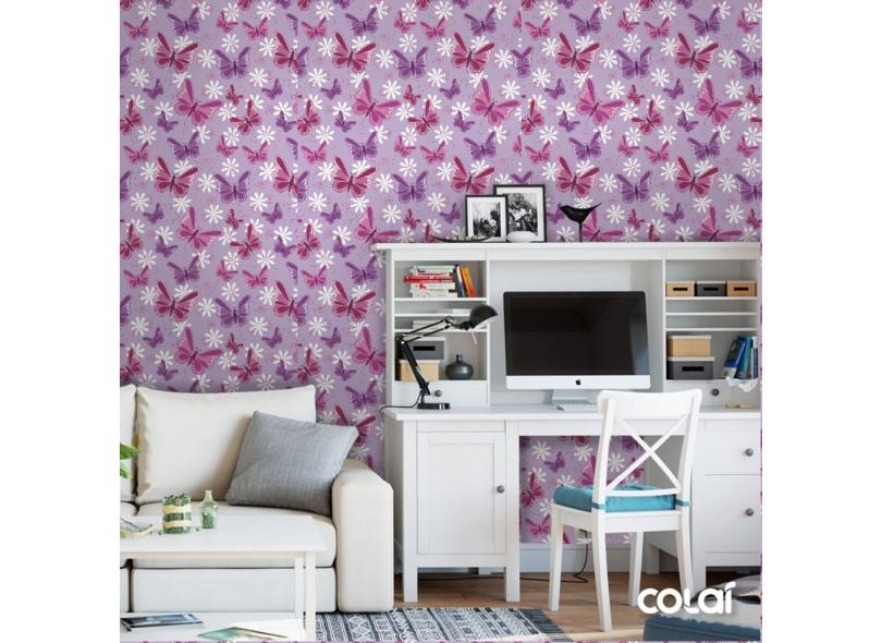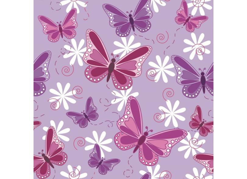 Papel De Parede Lavável Borboletas 3D Fundo Roxo 18M