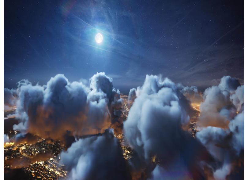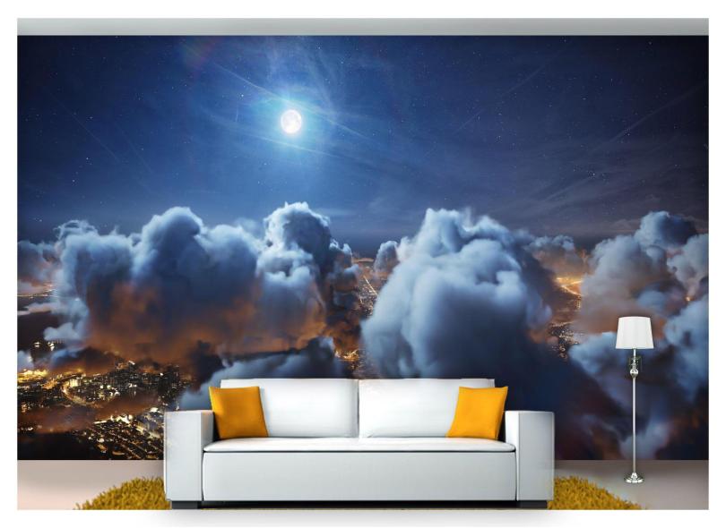 Papel De Parede Lua Noite Nuvens Estrelas 3D Nsk83