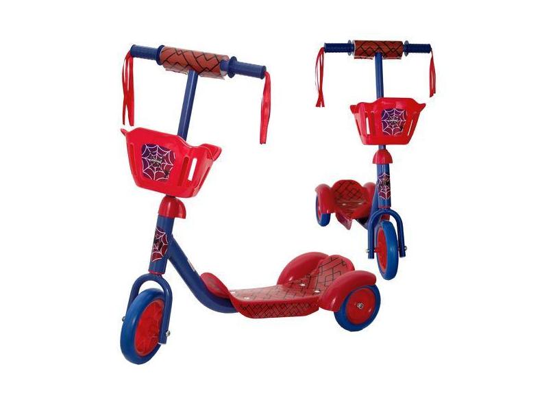 Patinete Infantil 3 Rodas Homem Aranha Cestinha Menino Azul