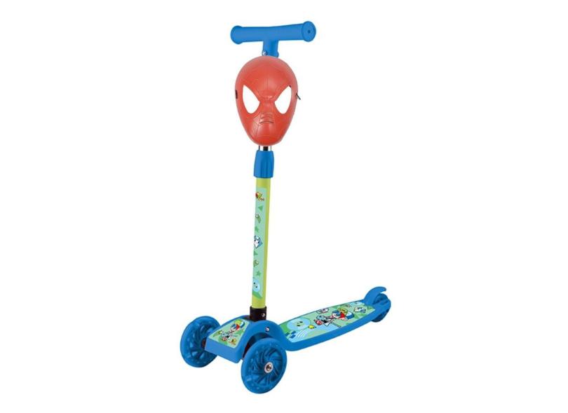 Patinete Radical Irado 3 Roda Luz Led + Máscara Homem Aranha