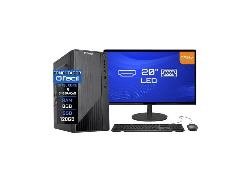 Computador Completo Fácil Intel Core I5 3ª Geração 8Gb Ssd 120Gb Monit