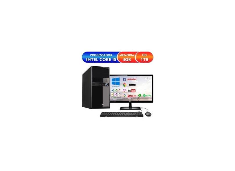 Computador Completo Intel Core i5 4GB HD 1TB Monitor HDMI 19.5" Áudio 5.1 canais PC CPU Windows 10 Quantum Flex
