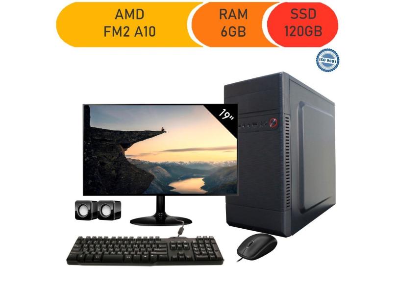 Computador Corporate Processador Amd Fm2 A10 6gb de Ram Ssd 120 Gb Kit Multimídia Monitor 19