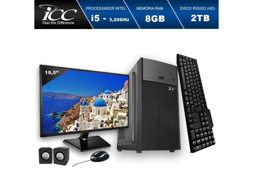 Computador ICC IV2583CM19 Intel Core I5 3.20 ghz 8GB HD 2TB DVDRW Kit Multimídia Monitor LED 19,5" HDMI FULLHD