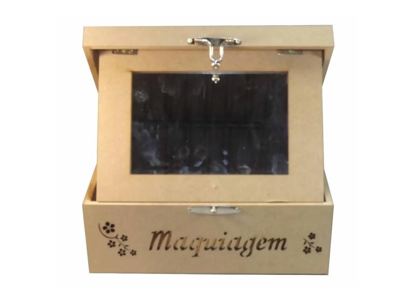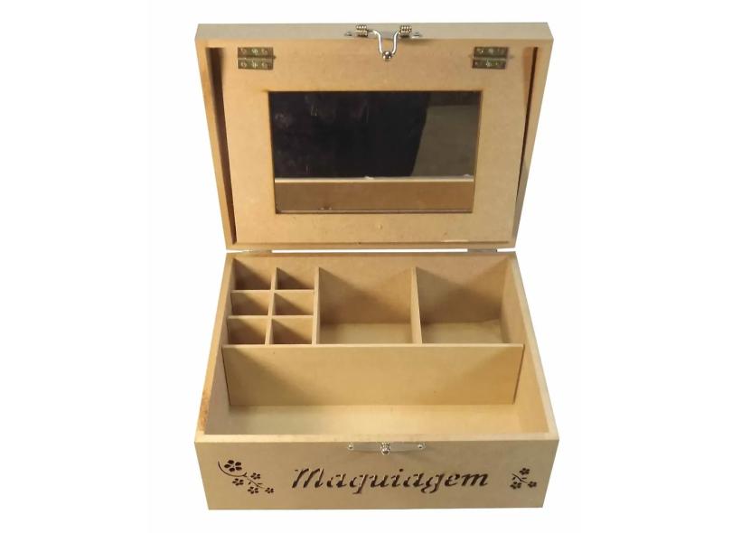 Caixa Maquiagem Flores com Espelho e Divisão - MDF a Laser