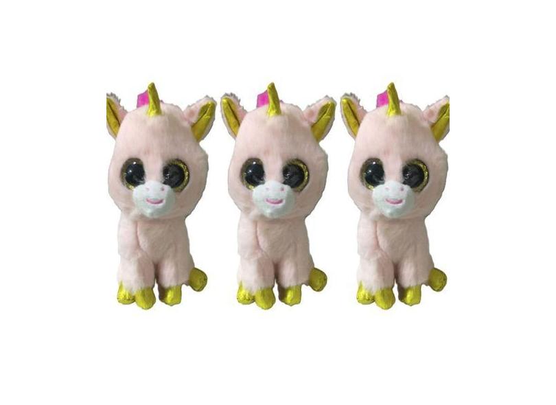 Kit C/3x Brinquedo de Pelúcia Unicórnio Rosa - Ty Rara