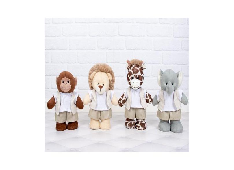 KIT SAFARI DE PELUCIA EM PÉ 25cm : LEÃO, ELEFANTE, MACACO E GIRAFA - C