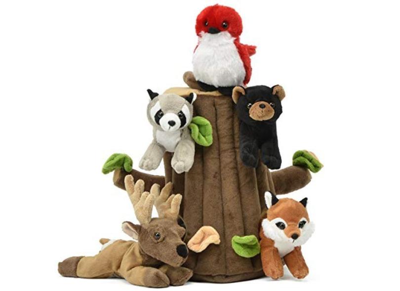 Unipak Plush Treehouse com Animais - Cinco (5) Animais de Pelúcia da Floresta