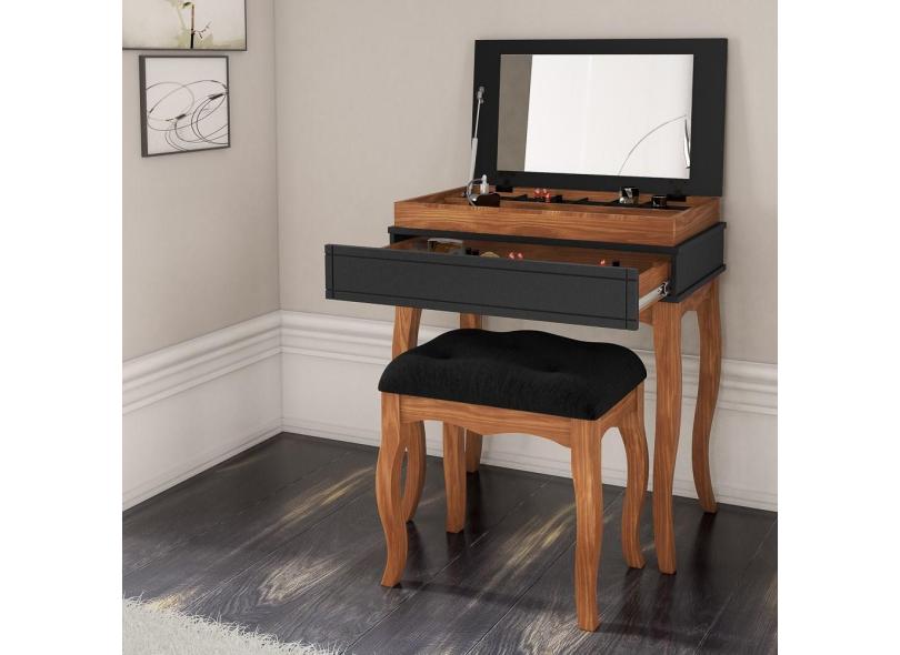 Penteadeira 1 Gaveta 1 Porta Com Espelho Sophia M19 Preto/Imbuia - Mpozenato
