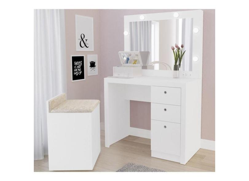 Penteadeira Camarim Com Banco Puff Baú PE2010 PU2052 Branco 381 Tecno Mobili