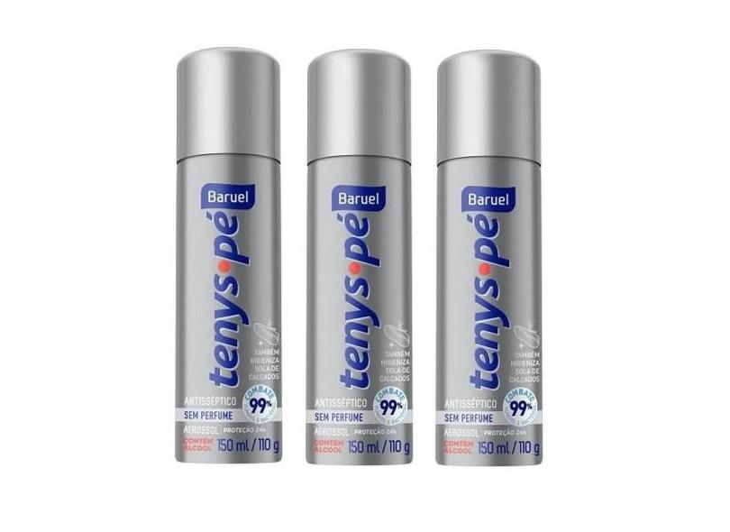 Kit 3 Antisséptico Aerossol s/ Perfume Tenys Pé Baruel 150ml