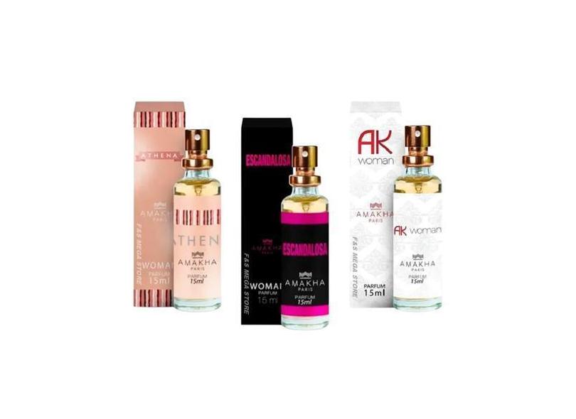 O menor preço encontrado no Brasil para Kit 3 Perfume Feminino Amakha Athena Escandalosa Ak Woman - Amakha Par atualmente é R$ 75,77.