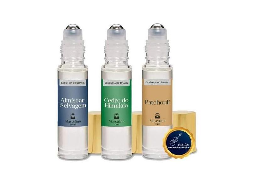Kit 3 Perfumes Roll On 10ml - Patchouli, Almíscar E Cedro - Essência d