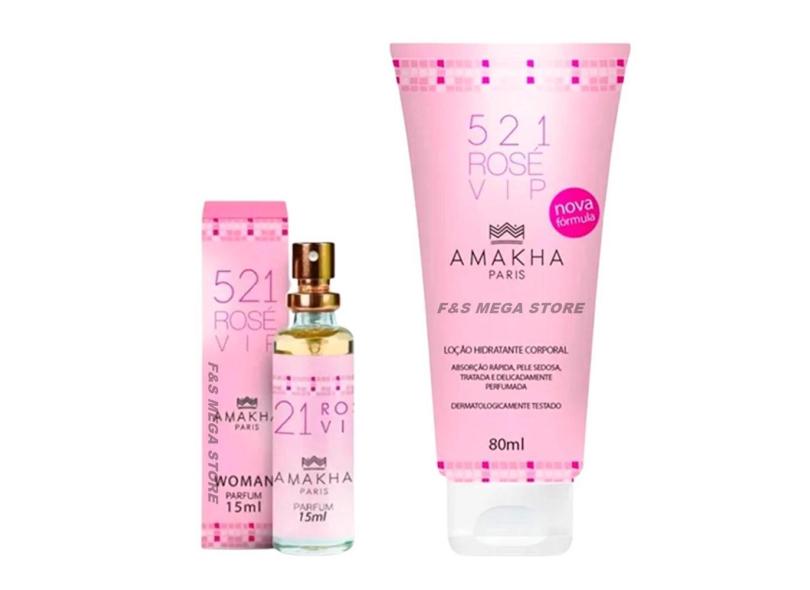 Kit Presente Feminino Perfume Hidratante 521 Vip Rose Amakha