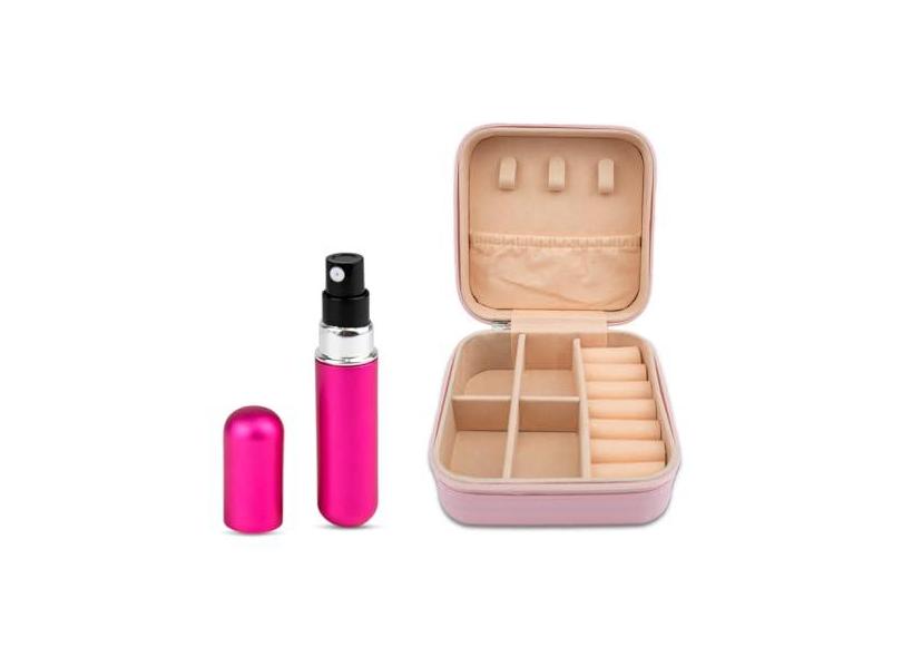O menor preço encontrado no Brasil para Kit Viagem Mini Porta Joias Rosa + Porta Perfumes Spray 5ml atualmente é R$ 34,90.