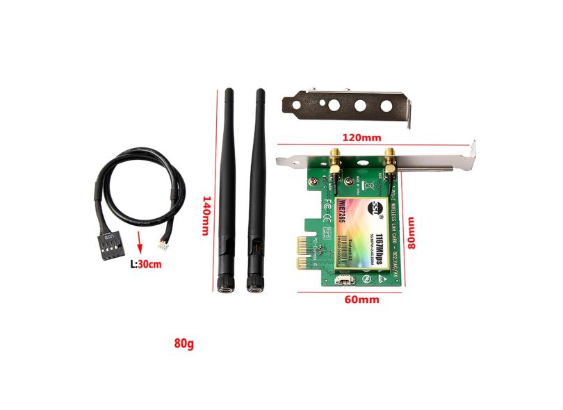 Placa de rede placa de adaptador WiFi Card ac 1200Mbps BT4.0 sem fio PCIe de rede 5.8GHz / 2.4GHz Dual Band pci Express