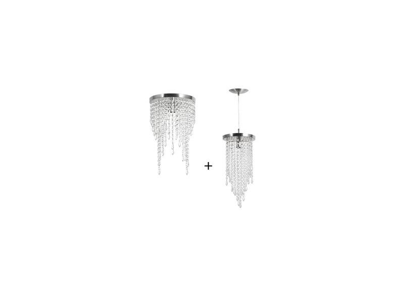 Kit 1 Plafon Redondo Crilik Pl7302 + 1 Ls7301 Cromado