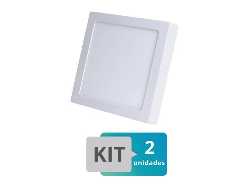 Kit 2 Painel Plafon Led Sobrepor Quadrado 25W Branco Quente
