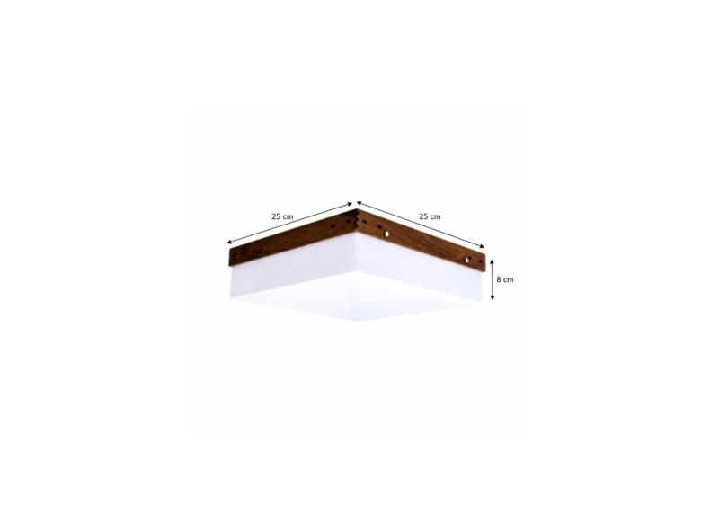 Plafon Acrílico com Madeira Superior 25X25X8CM para 2 lâmpadas LED