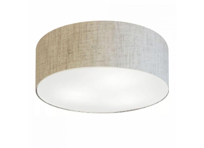Plafon Cilíndrico Cúpula Tecido 60X15cm Rústico Bege Bivolt