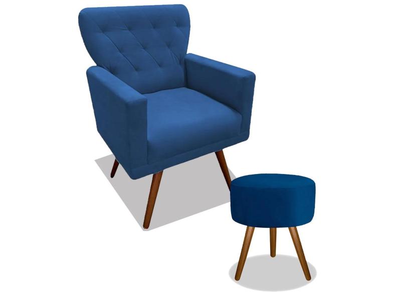 O menor preço encontrado no Brasil para Combo Poltrona Decorativa Julieta Com Puff Redondo Pés Madeira Suede Marinho atualmente é R$ 417,34.
