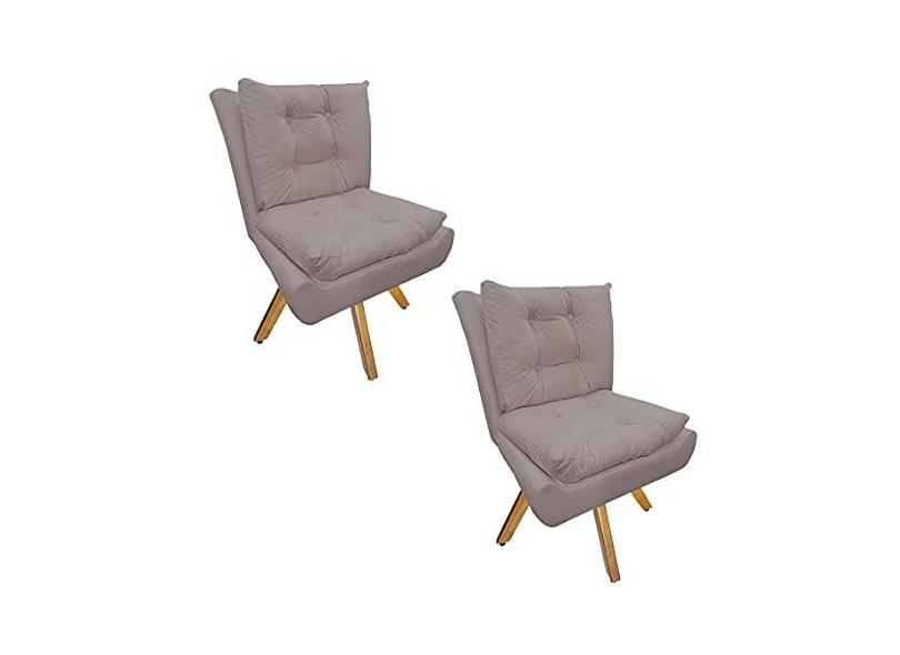 Jogo 2 Poltrona Estofada Sala Com Base Giratória de Madeira Karen Suede Rose DL Decor