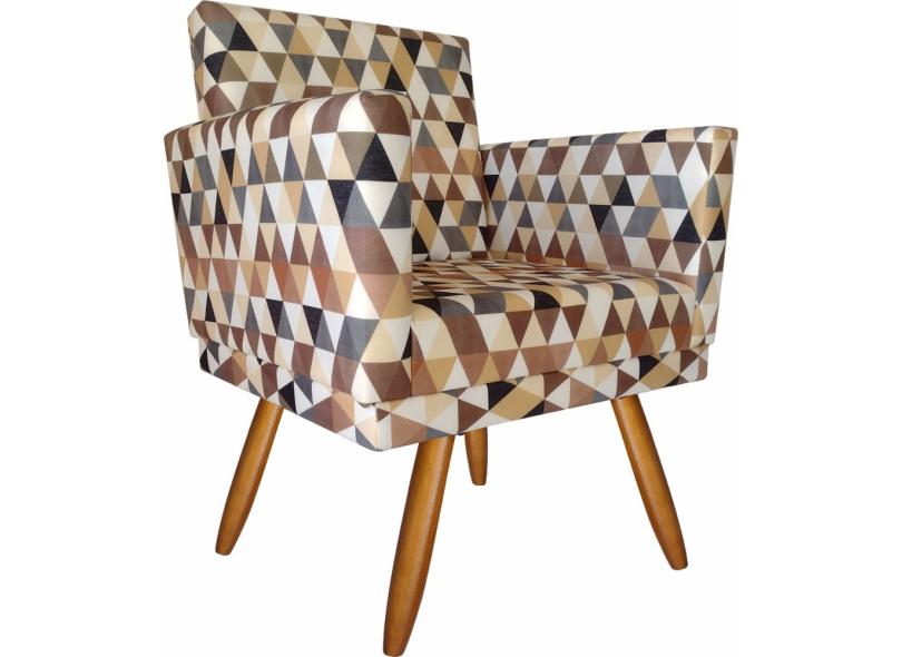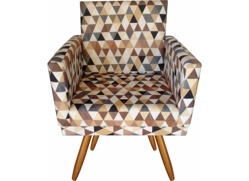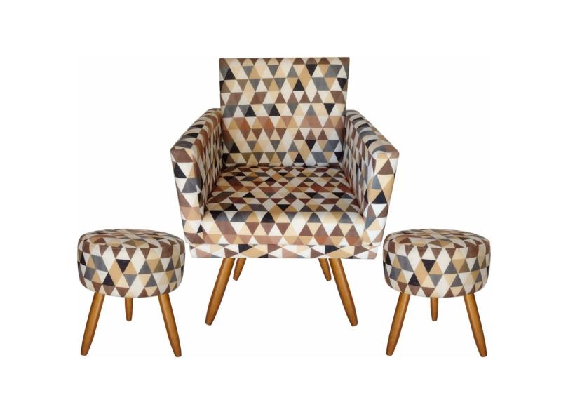 Kit 01 Poltrona Decorativa Nina E 2 Puff Triângulo Bege