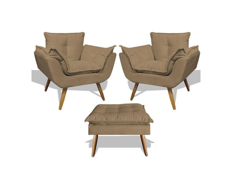 Kit 02 Poltrona Decorativa Opala E Puff Opala Suede Capuccino Su Decor