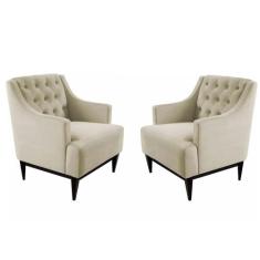 Kit 02 Poltronas Decorativa Clássica Capitonê Suede Bege - DS Móveis