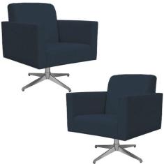 Kit 02 Poltronas Decorativas Base Giratória Para Sala de Estar Helô L02 Suede Marinho - Lyam Decor