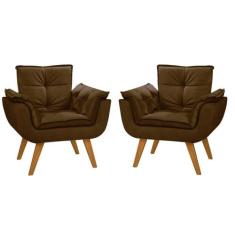 Kit 02 Poltronas Decorativas Opala Suede Marrom - Dora Bela