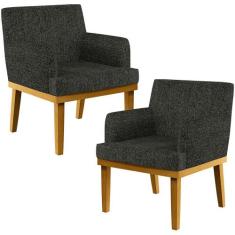 Kit 02 Poltronas Decorativas Para Sala de Estar Beatriz W01 Linho Chumbo - Lyam Decor
